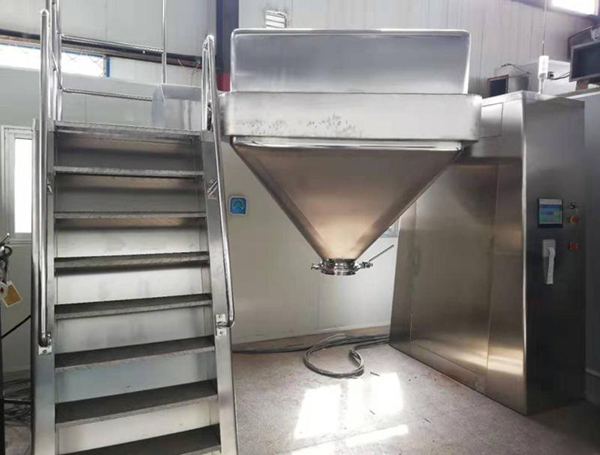 該機主要用于制藥工業固體制劑生產中的顆粒與顆粒、顆粒與粉末、粉末與粉末等物料的混合。具有混合批量大,受力可靠,運行平穩等優點,是藥廠總混的理想設備。同時在制藥、化工、食品等行業廣泛應用。本機由機座、驅動系統、控制系統、混合料斗等部件組成。工作時,將物料加入料斗后,鎖緊斗蓋,按工藝要求設定混合時間、混合速度、啟動控制系統,即可開始混合作業;到設定的時間后,機器自動停止,混合結束后進行分料。該機是我公司廣泛吸收、消化國外技術,結合國情研發成功的新機型。結構合理,性能穩定,操作方便,整機無死角,無外露螺釘。