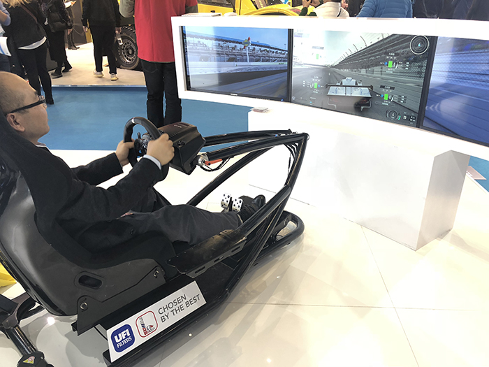 With a brand-new installation for the Eastern market, the UFI and SOFIMA stand is in keeping with the layout for the Frankfurt edition of the trade fair, a combination of graphic and architectural elements that stress the connection between tradition and new technologies. A reserved area on the upper level recalls the traditional shape of a filter on a structural level. At ground level there’s a special “entertainment area” with a Formula 1 driving simulator. UFI Filters is recognised as the preferred supplier for many F1 teams: as many as 110 UFI filters were used this year during each Grand Prix. So visitors can put their skills at the wheel to the test and feel the sensation of really driving a Formula 1 car.
